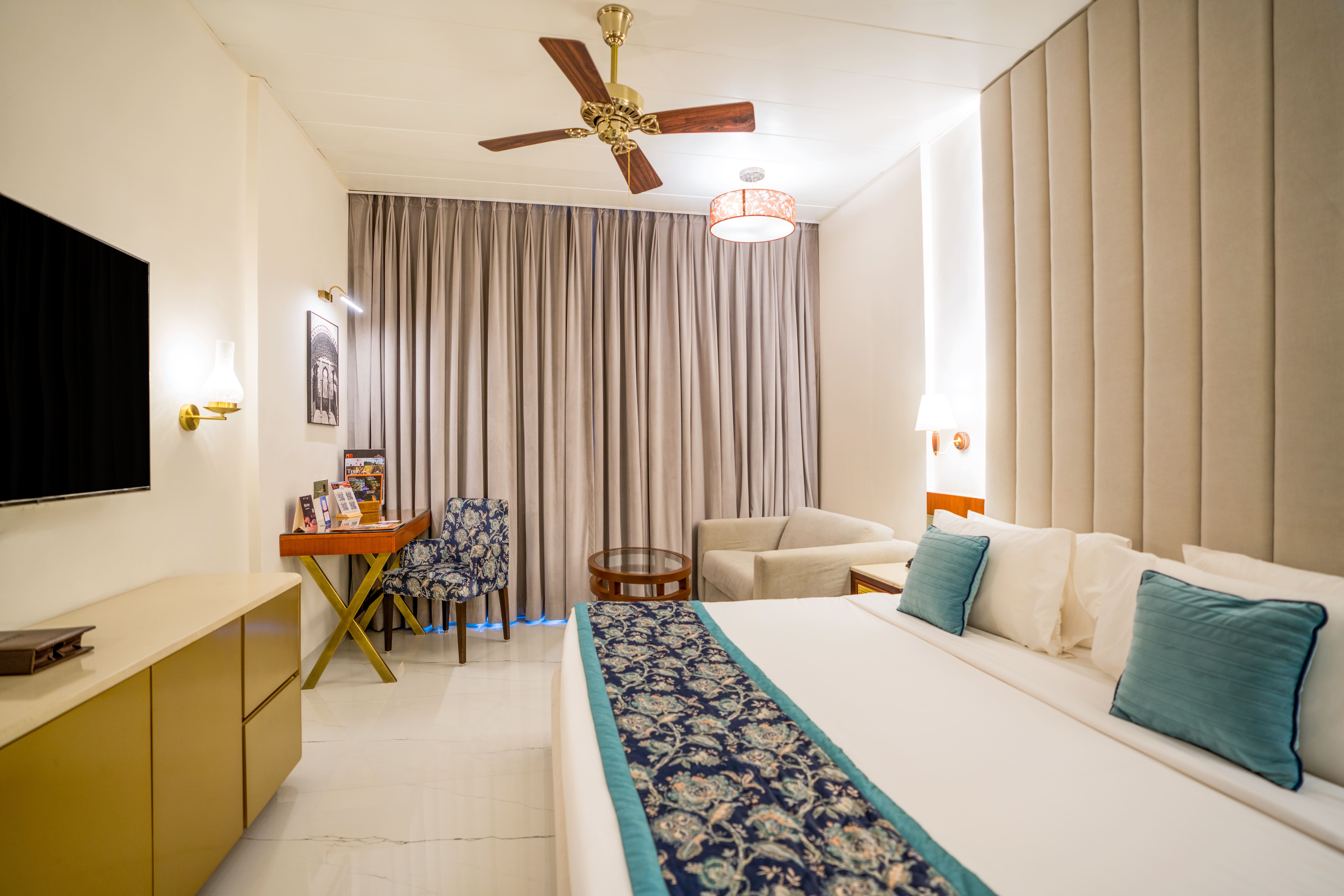 The name "Rainforest Room" implies a space that is designed or themed to evoke the atmosphere and elements of a lush, tropical rainforest. Our "Rainforest Room" features a queen -sized bed and seat out balcony. Use the bedside switch panel to operate lights. Floor-to-ceiling windows embraces natural light in room along with greenery, natural textures, and possibly even the sounds of rainforest creatures. After a hectic day, tune in the latest movies or shows on the 55- inch IP TV. Continue your relaxing stay with a lavish ensuite bathroom featuring Boutique bath amenities, a walk-in shower. Other amenities include an in-room safe, iron/ironing board and individual controlled air-conditioning.